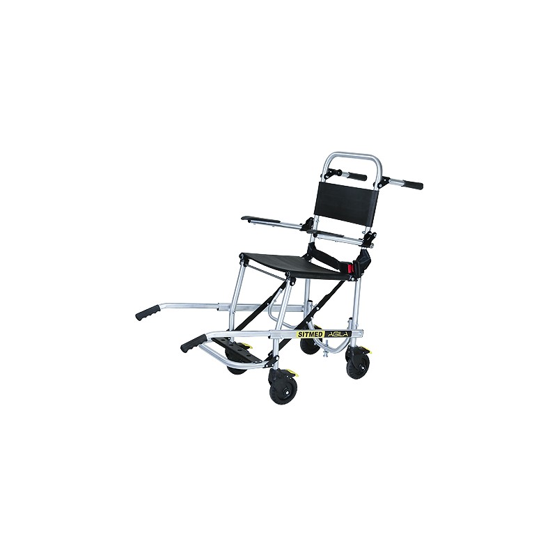 Cadeira de resgate dobrável e extremamente dinâmica. Facilita a operação de resgate em escadarias e elevadores, tornando ágil o atendimento a vítimas