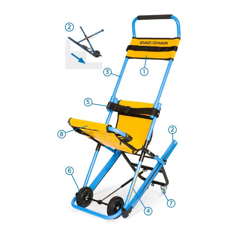 A Cadeira de emergência EVAC + CHAIR® 300H (MK4) é uma solução altamente inovadora para cadeiras de  que permite a saída segura de pessoas com mobilidade reduzida de um prédio em caso de emergência ou evacuação.