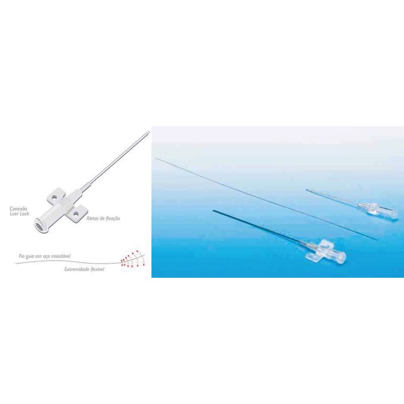 Cateter fabricado em material biocompatível não trombogênico, com baixo coeficiente de atrito, permitindo fácil inserção. Possui uma linha radiopaca que proporciona excelente visualização radiográfica. Acompanha acessórios necessários para a implantação através da Técnica de Seldinger (agulha de punção e guia metálico).
