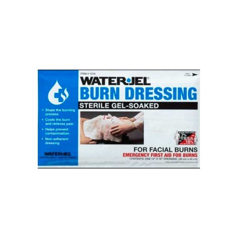 Lenço umedecido embebido em gel à base de água / solúvel em água, biodegradável, bacteriostático e esterilizado para assegurar uma atmosfera livre de contaminação, para o uso em emergências com queimaduras no rosto(1º, 2º e 3º Graus), projetado convenientemente para envolver as áreas queimadas onde o tamanho seja adequado.