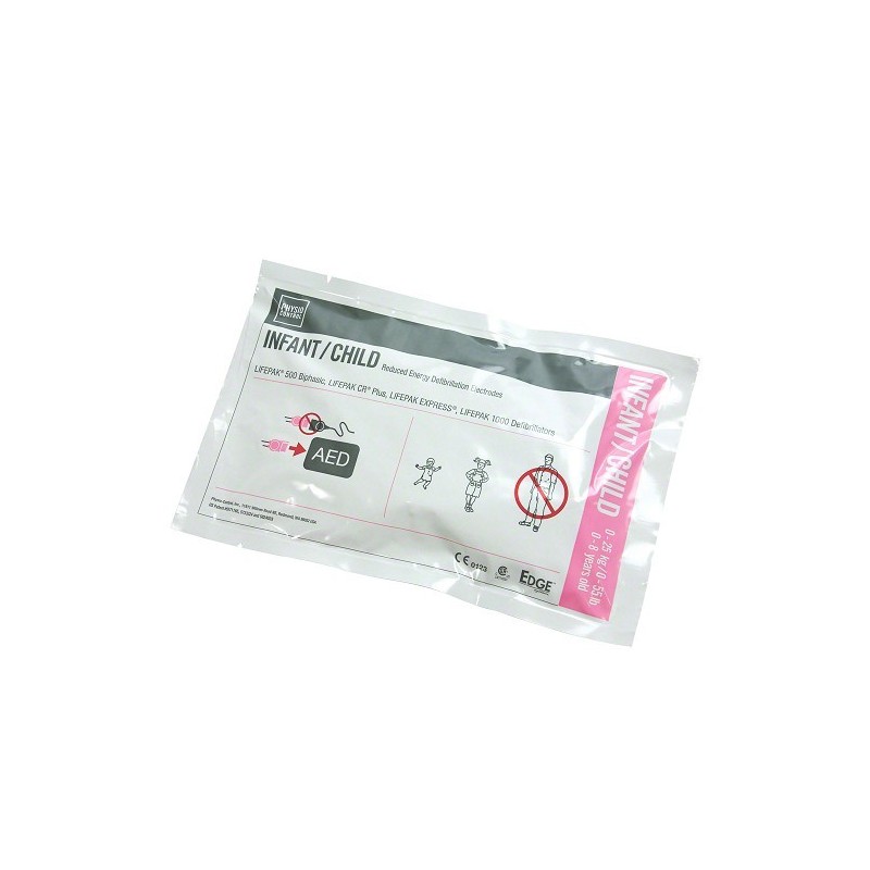 Eletrodos/Almofadas de eletrodo de desfibrilação de energia infantil / criança reduzida - Use somente com o Lifepak® 500 AEDs com um conector rosa (padrão em AEDs construído após 8/9/02 mais informações) ou qualquer desfibrilador Lifepak® CR Plus, Lifepak® 1000 . Destinado a utilização em crianças até 8 anos de idade ou 25 kg (55lb).
