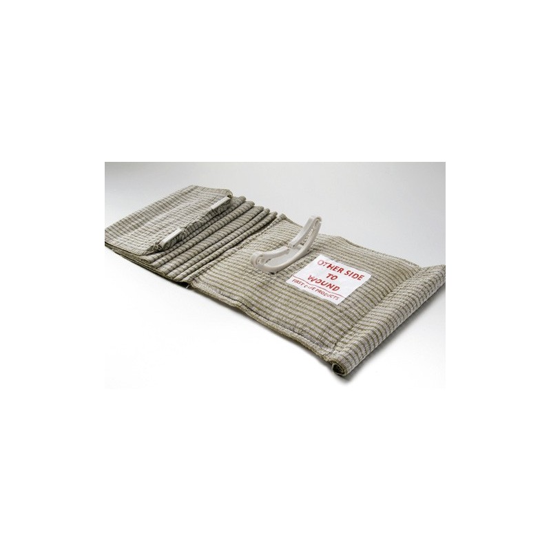 Atadura de Emergência esterilizada, com pressão direta sobre a ferida, multifuncional para tratamento de hemorragias traumáticas em emergências. |