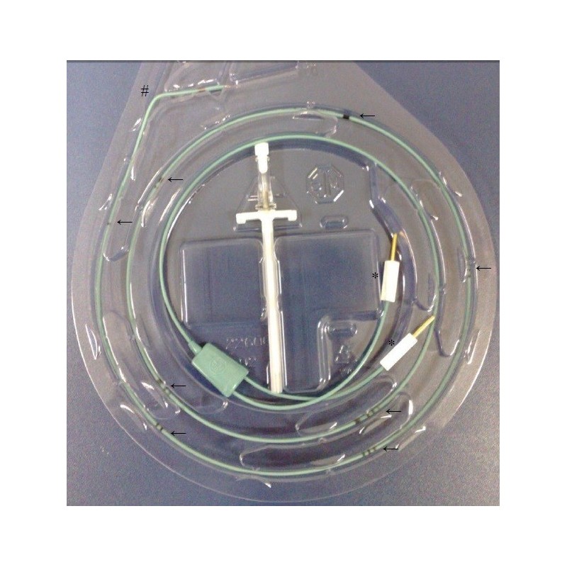 Material: Cateter flexível de poliuretano ou silicone, com ponta eletrificada de platina ou liga metálica.
