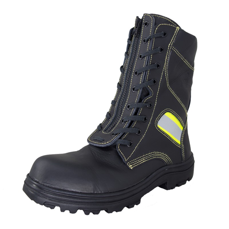 Coturno confeccionado com materiais 100% antichamas, ideal para combate a incêndios, atendendo a área militar, metalurgia ou solda.