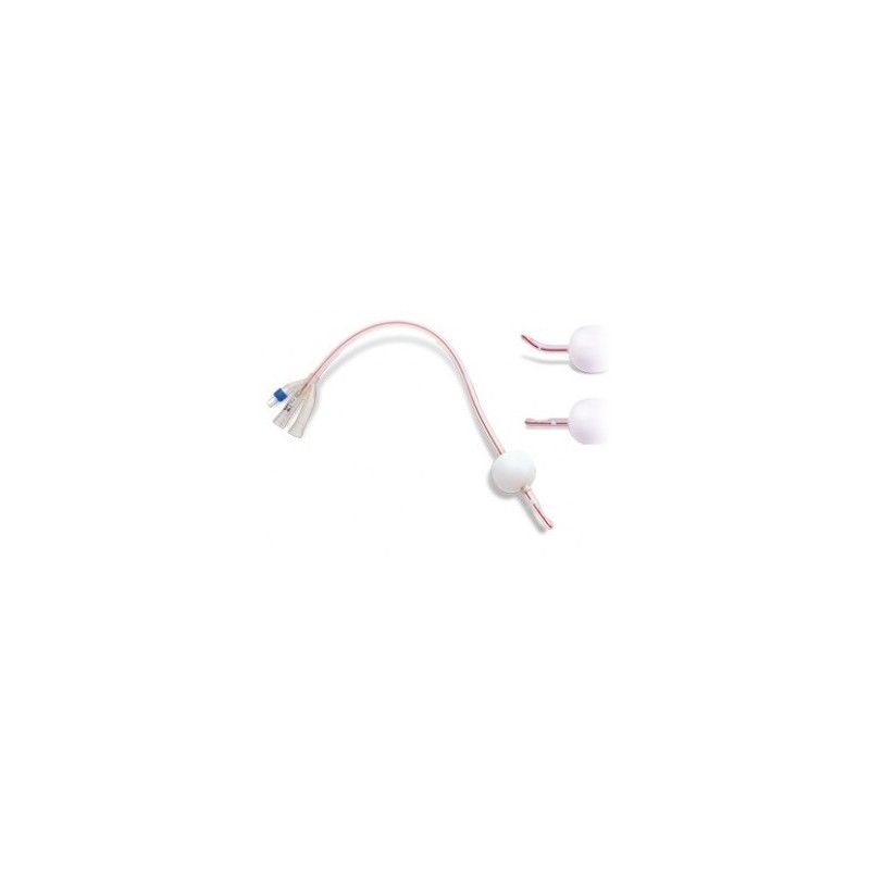 Tubo de PVC transparente atóxico termosensível , flexível com 3 vias. Possui linha colorida diferenciando seu grau de flexibilidade e tamanho. Ponta distal atraumática com orifícios de drenagem e irrigação, válvula para conexão Luer e Luer-lock. Balão de látex (30 ml. / 75 ml.)Sonda Vesical Foley com balão SoftFoleyplast