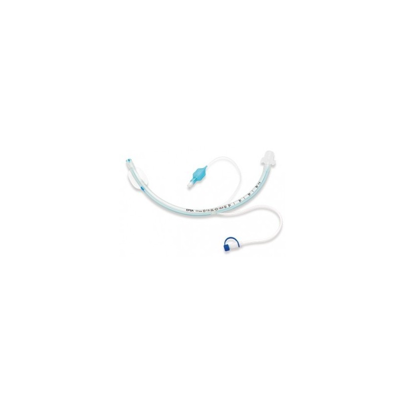 Sonda constituída em PVC transparente curvado anatomicamente, para assegurar a insuflação simétrica do balão e a centralização da ponta no interior da traqueia; material descartável, flexível, atóxico, siliconizado, com linha radiopaca continua graduada em centímetros para controle da inserção e posicionamento; ponta distal retraída atraumática com orifício tipo Murphy localizado lateralmente.