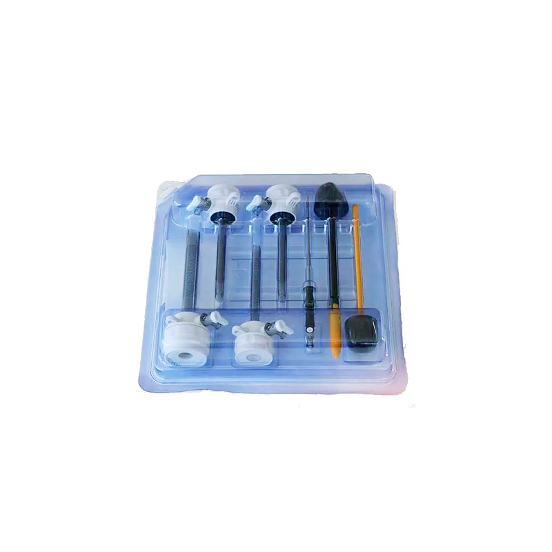• Trocarte: o formato da extremidade distal (ponta) do trocarte dilatadora, com lâmina em aço inoxidável, que se retrai para dentro da ponta, garante duas características indispensáveis ao procedimento: ótima performance e segurança na introdução quando o trocarte atinge uma cavidade. Disponível nos tamanhos 5.8, 10.8 e 12.8 m de diâmetro externo.