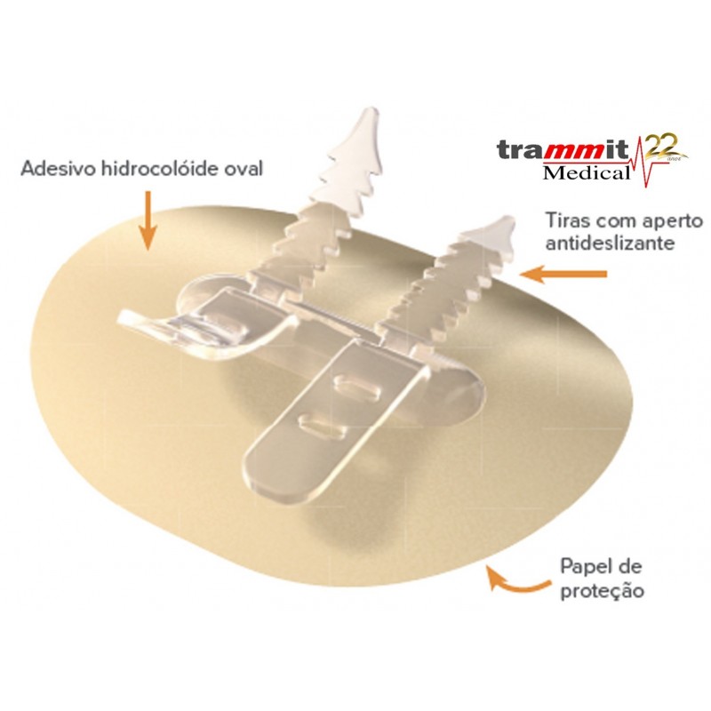 Esse dispositivo é feito de hidrocoloide livre de látex, material patenteado, tecnologia que previne rasgos e irritações na pele, ao contrário de outros dispositivos de fixação à base de acrílico com punhos antideslizantes suaves que prendem os tubos, com três opções de dimensionamento para a base hidrocoloide, com fixação para até 7 dias.