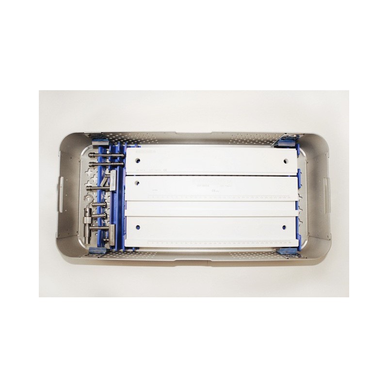 A Caixa de Ligamentos 1, contém instrumental para cirurgias de ligamento que utilizam: parafusos de interferência, agrafes e âncoras corticais femorais