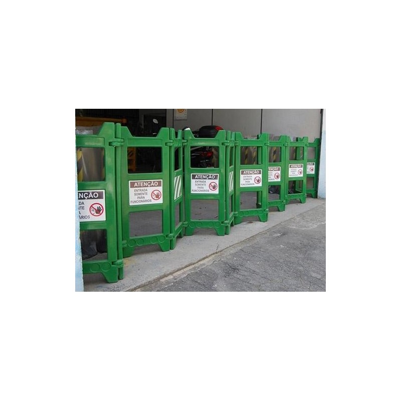 Barreira totalmente confeccionada em material plástico, que permite diversas formas de utilização, como uma barreira física de isolamento, um sinalizador, um delimitador de áreas e os seus pés que se encaixam, resultam em um pequeno volume para ser guardada ou estocada.