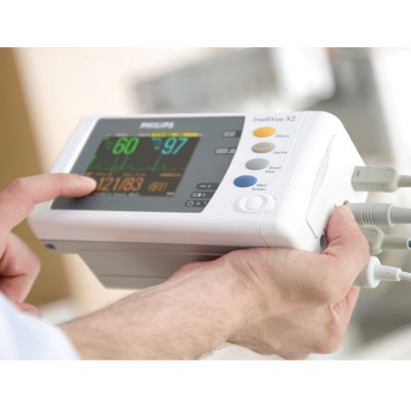 O MMS X2 é tanto um monitor compacto, pré-configurado, quanto um módulo que pode ser conectado aos monitores modulares da linha IntelliVue. Possui tela touchscreen de 3,5″, altamente flexível, com vizualização de até 3 ondas de fácil interpretação e diversas configurações de tela, incluindo visualização em tempo real e simultânea das 12 derivações, análise do segmento ST, mapa de ST, entre outras.