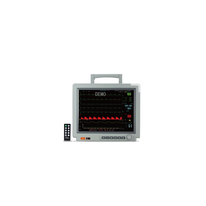 • Eletrocardiografia (ECG), 3, 5 ou 10 vias com 7 derivações mostradas simultaneamente. Detecção do Segmento de ST e QRS. Analisador de arritmia (12 tipos), Histórico de arritmias gravadas com traçados de ECG, segundos antes e depois, detector de marca passo, detecção do segmento ST-QRS, filtro de banda DIA, MON, OPR.