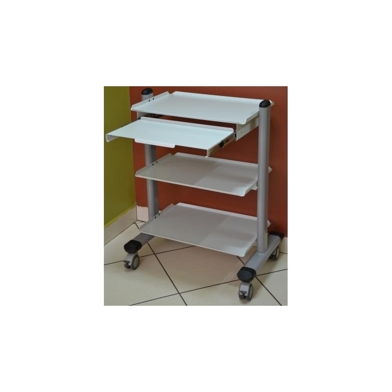 CARRINHO AUXILIAR HOSPITALAR COM 3 BANDEJAS E SUPORTE TELESCÓPICO E RODÍZIOS