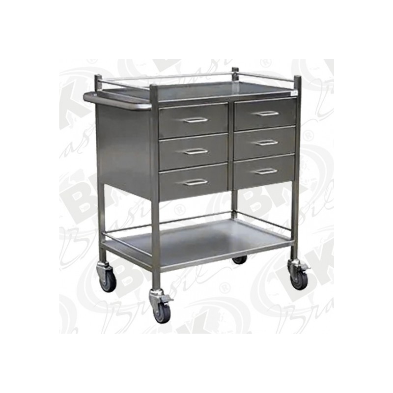 CARRO AUXILIAR 06 GAVETAS PARA ANESTESIA 800 X 490 X 900 MM – AÇO INOXIDÁVEL