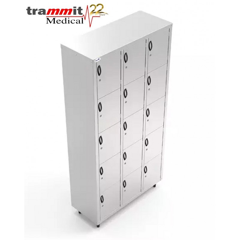 – Fabricado obedecendo a NR18/NRr24; - Construído em aço inoxidável, chapa AISI 304 liga 18.8, bitola 20; - Possui portas, puxadores e fechaduras; - Modulados para receber até 5 portas por coluna no máximo 4 colunas; - Medida por coluna 360x450x1998 mm.