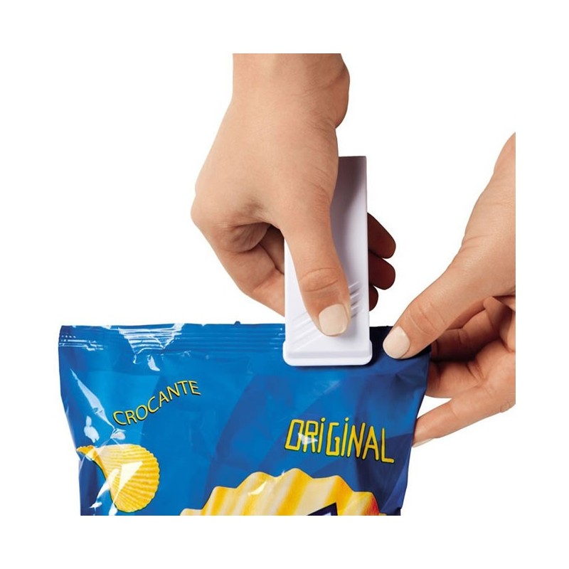 Salgadinhos que você consumiu apenas uma parte e pretende consumir o restante mais tarde ficam conservados como se o saco tivesse acabado de ser aberto. Qualqer outra embalagem plástica também pode ser selada em segundos, tanto de alimentos, como de qualquer outro produto.